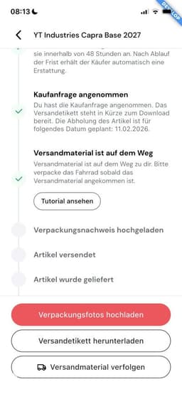 Nach Erhalt hast Du 48 Stunden, um alles zu prüfen und eventuelle Probleme zu melden. Entspricht das Bike nicht der Beschreibung, kannst Du es kostenlos zurückschicken. Erst wenn Du das Bike akzeptierst, zahlen wir den Verkäufer aus.